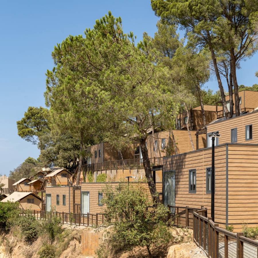 104 accommodations built using ecological materials with stunning views of the sea and the surrounding pine grove.